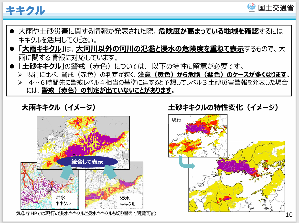 さらに「土砂キキクル」の判定特性が変わる点(黄色→紫に跳ねるケースが増える等)にも触れられており、“色の変化の意味”を理解して使う重要性が増します。