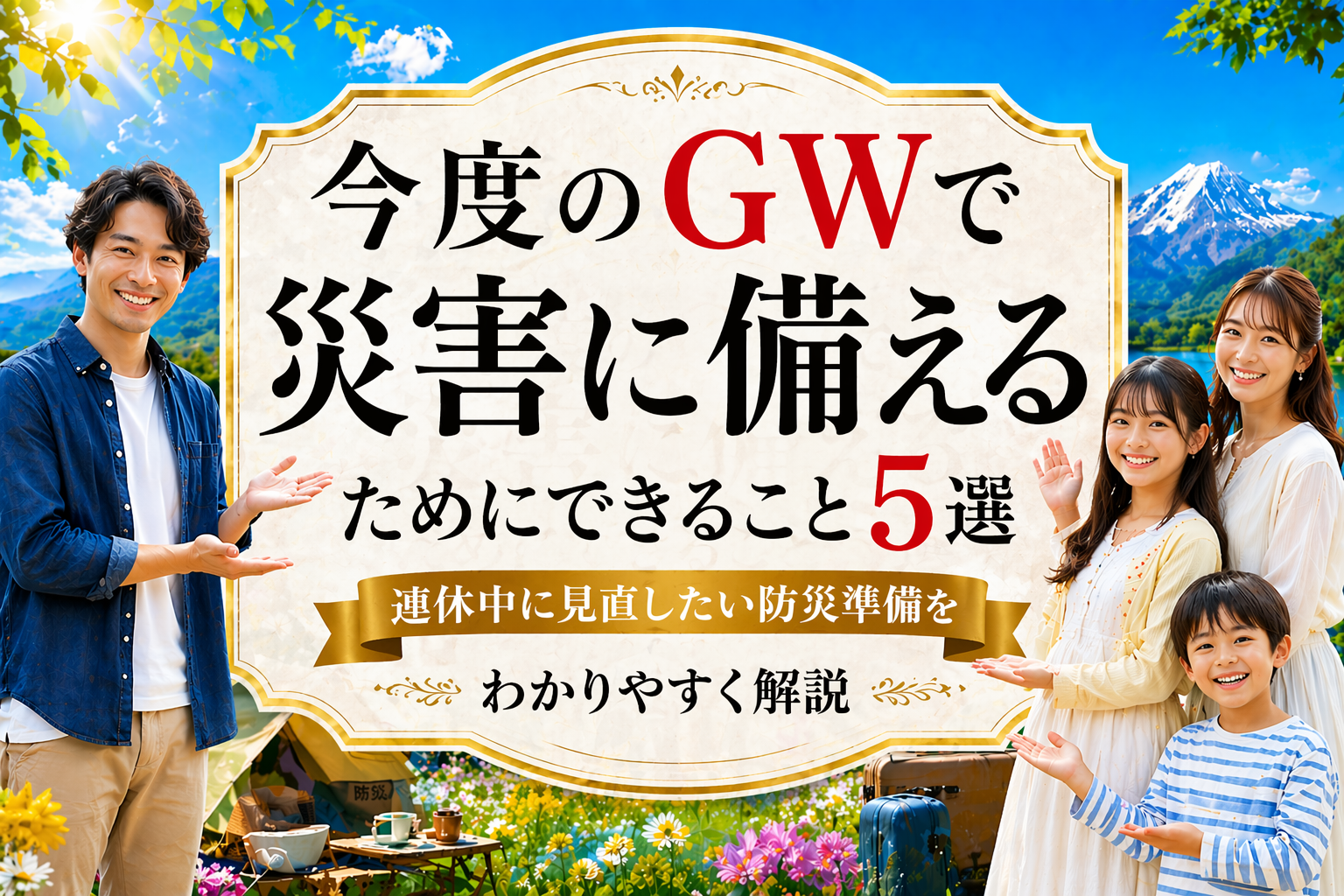 今回は、ゴールデンウィーク前に家族で見直したい防災準備を5つに絞って、わかりやすくご紹介します。