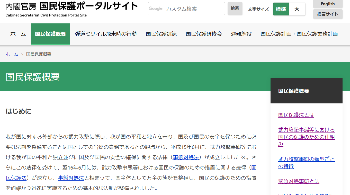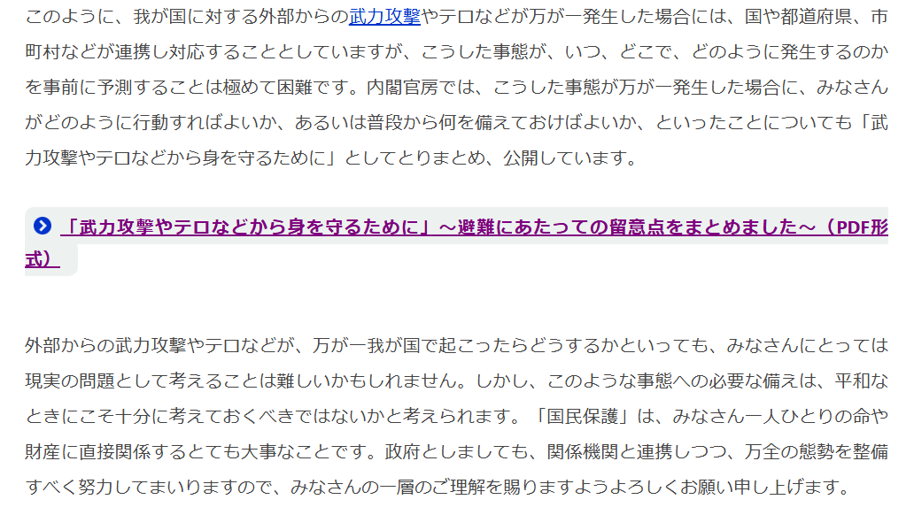 国民保護概要のページには、