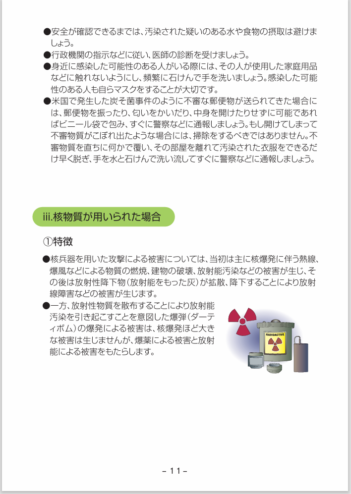 - 化学剤・生物剤・核物質が使われた場合