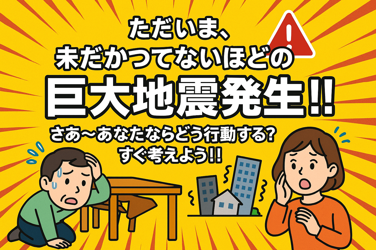 Column:「ただいま、未だかつてないほどの巨大地震発生!!さあ~あなたならどう行動する?すぐ考えよう!!」