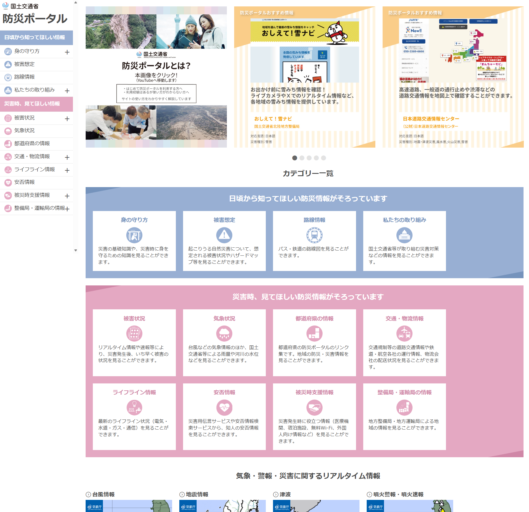 「日頃から知ってほしい情報」と「災害時、見てほしい情報」が一か所にぎゅっと詰まった、国レベルの“防災ハブサイト”です。参考:国土交通省